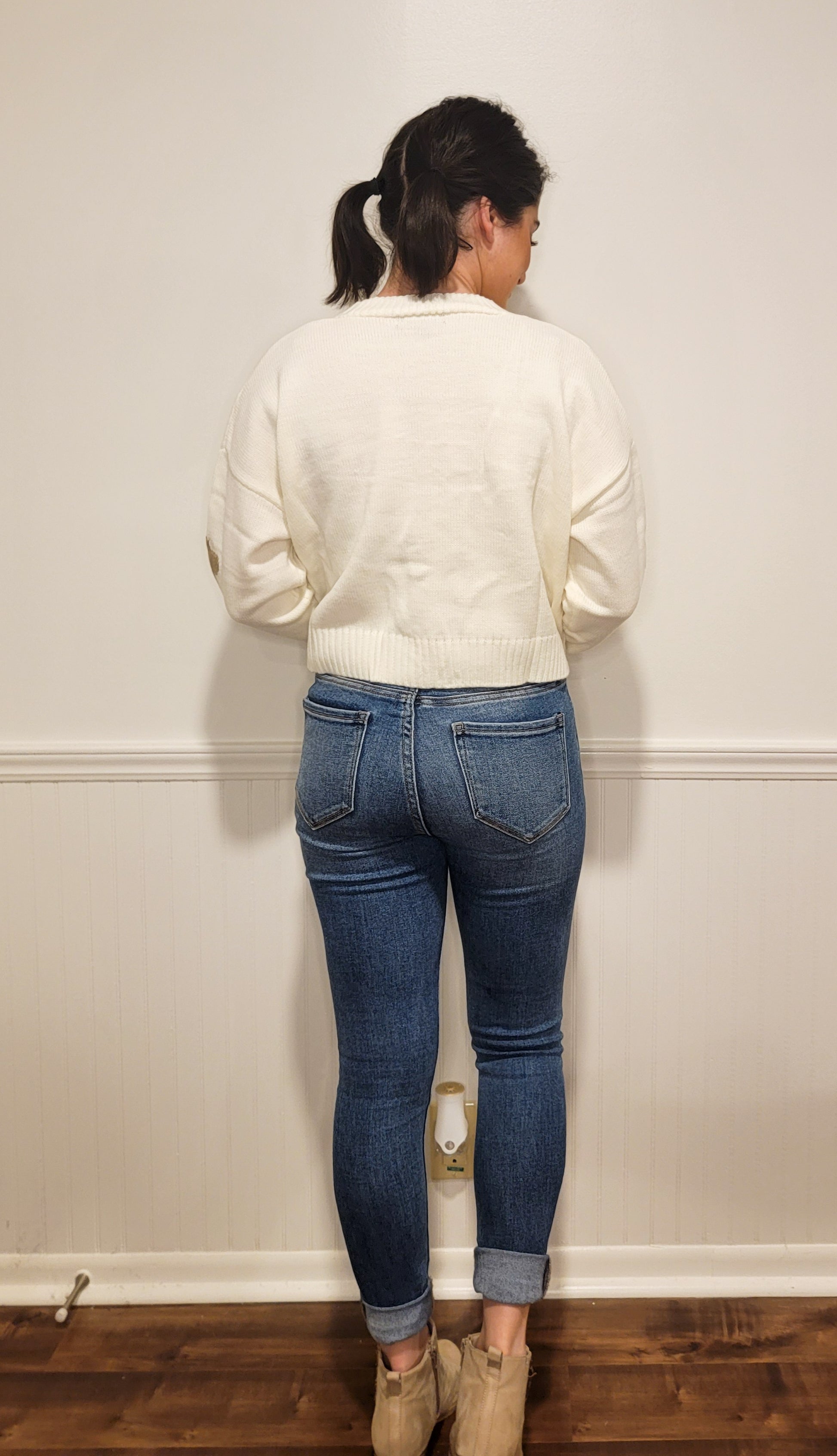 **Reminder to our long-torso friends, this is a cropped style sweater!