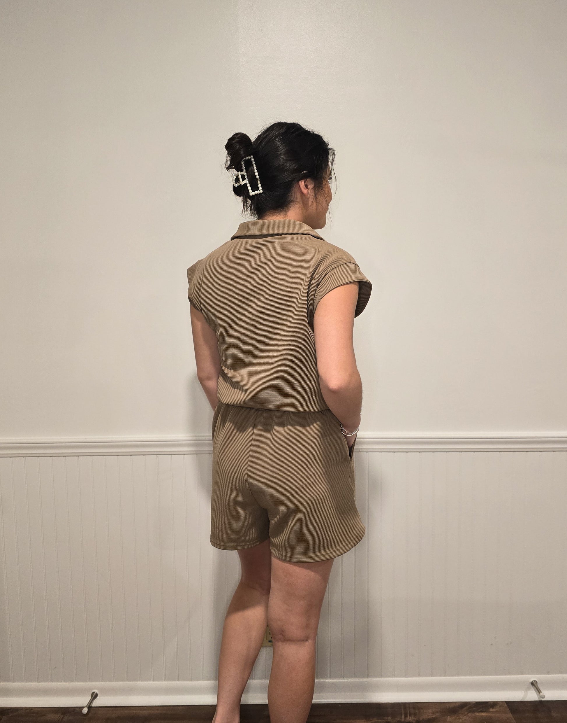 You don't want to miss out on this super comfy romper! It has a textured fabric to elevate your look! It also features a sporty, half-zip front closure and has a drawstring waist to define your silhouette! Pair with your favorite pair of sneakers for a cute outfit on the go!
