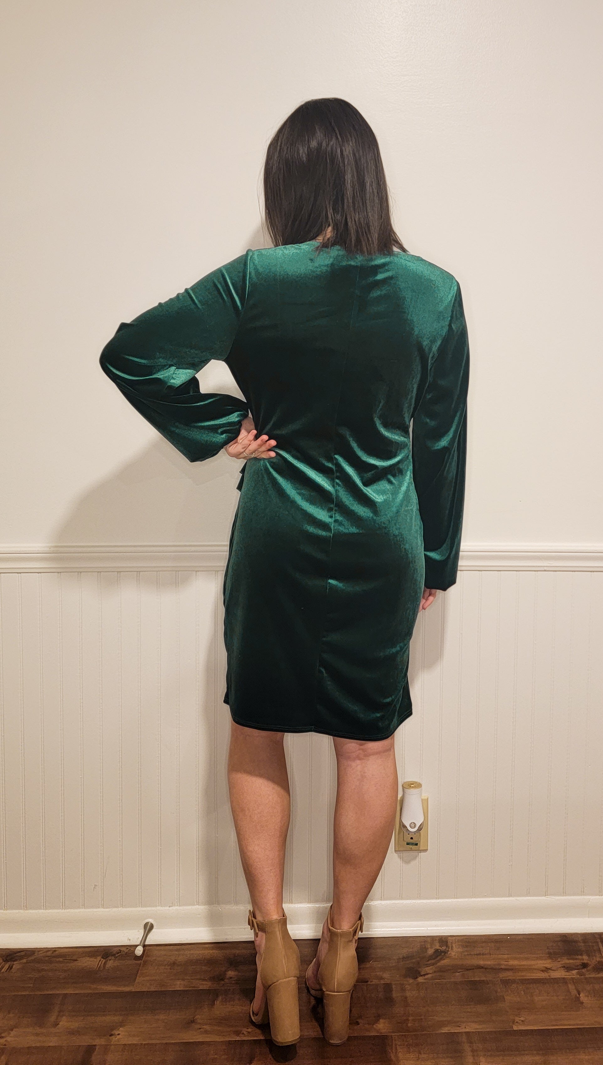 Fashionably Late Velvet Dress in Emerald