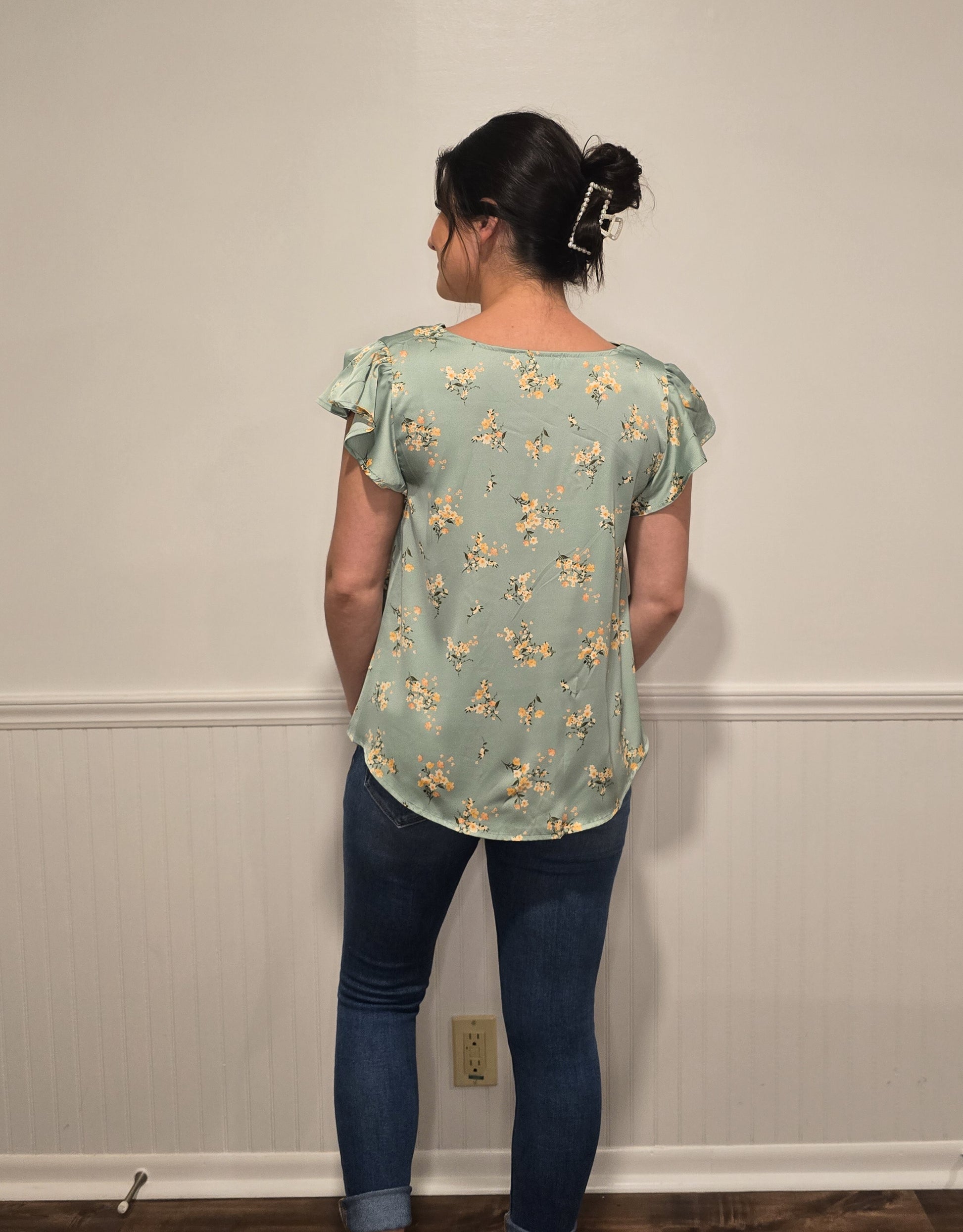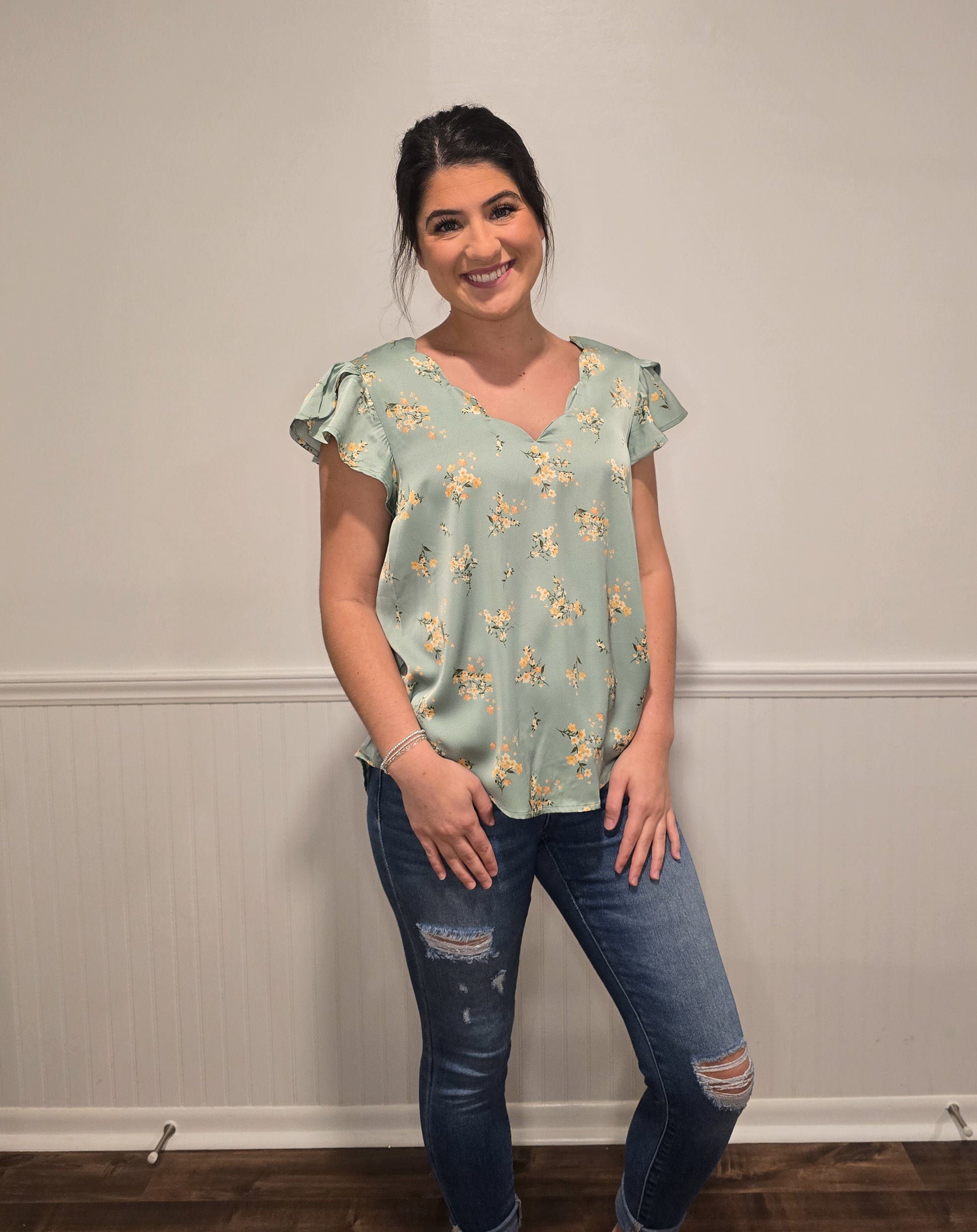 This adorable satin blouse is so lightweight and perfect for summer date night! It has a scalloped v-neckline and short tulip sleeves. Pair with your favorite denim pants or shorts for your desired outfit look! Not lined.