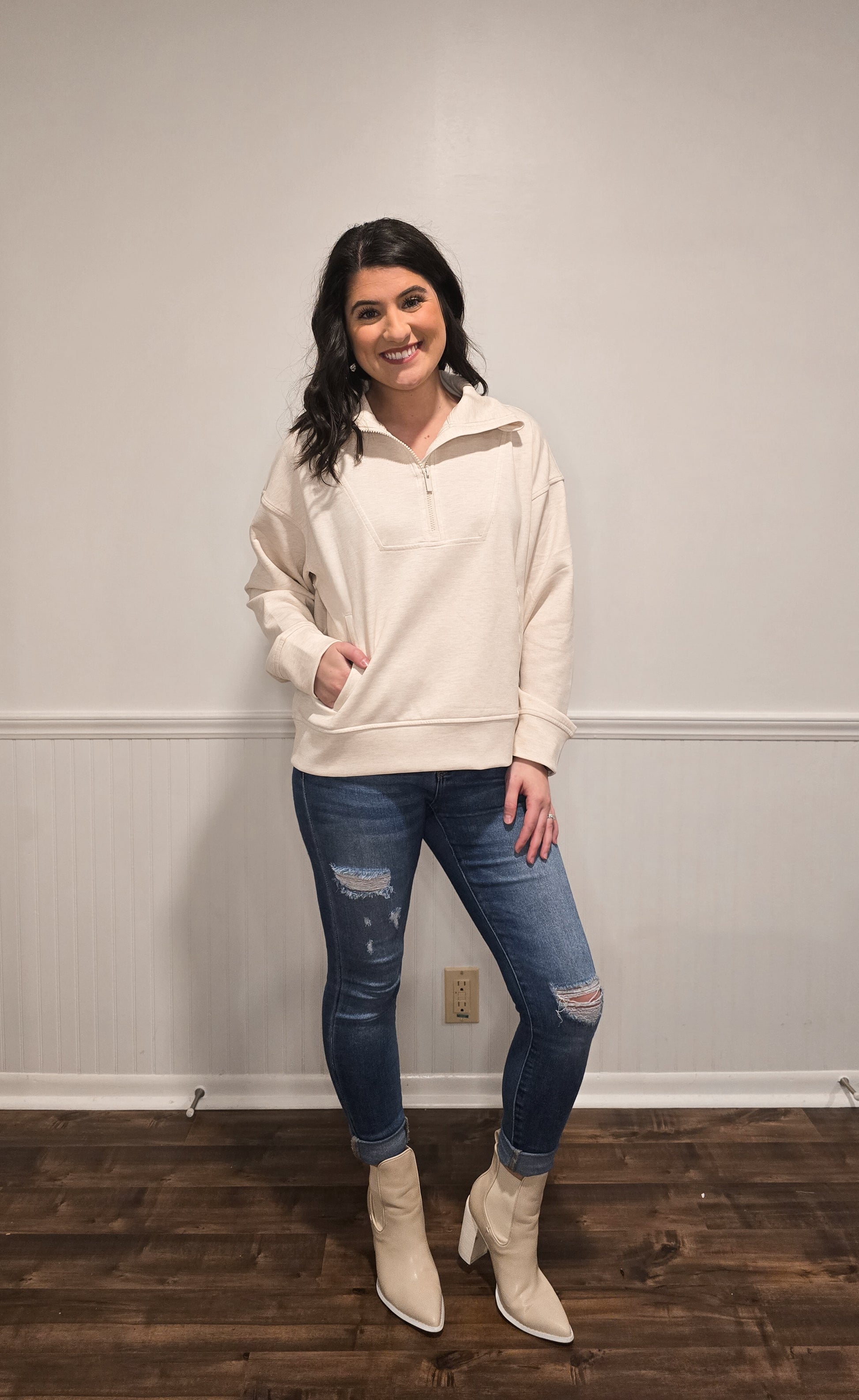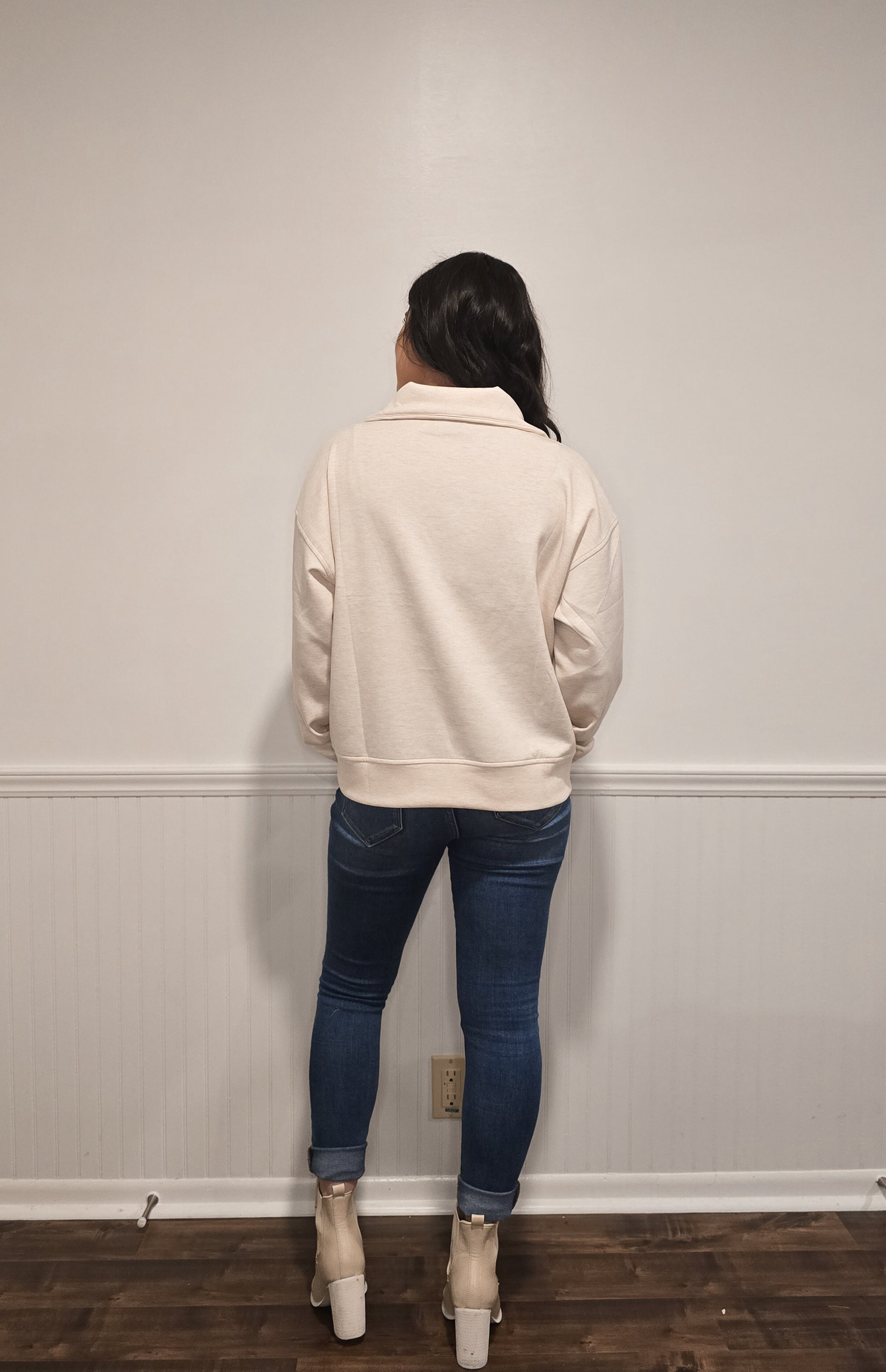 Girl On The Go Scuba Half-Zip Pullover in Cream