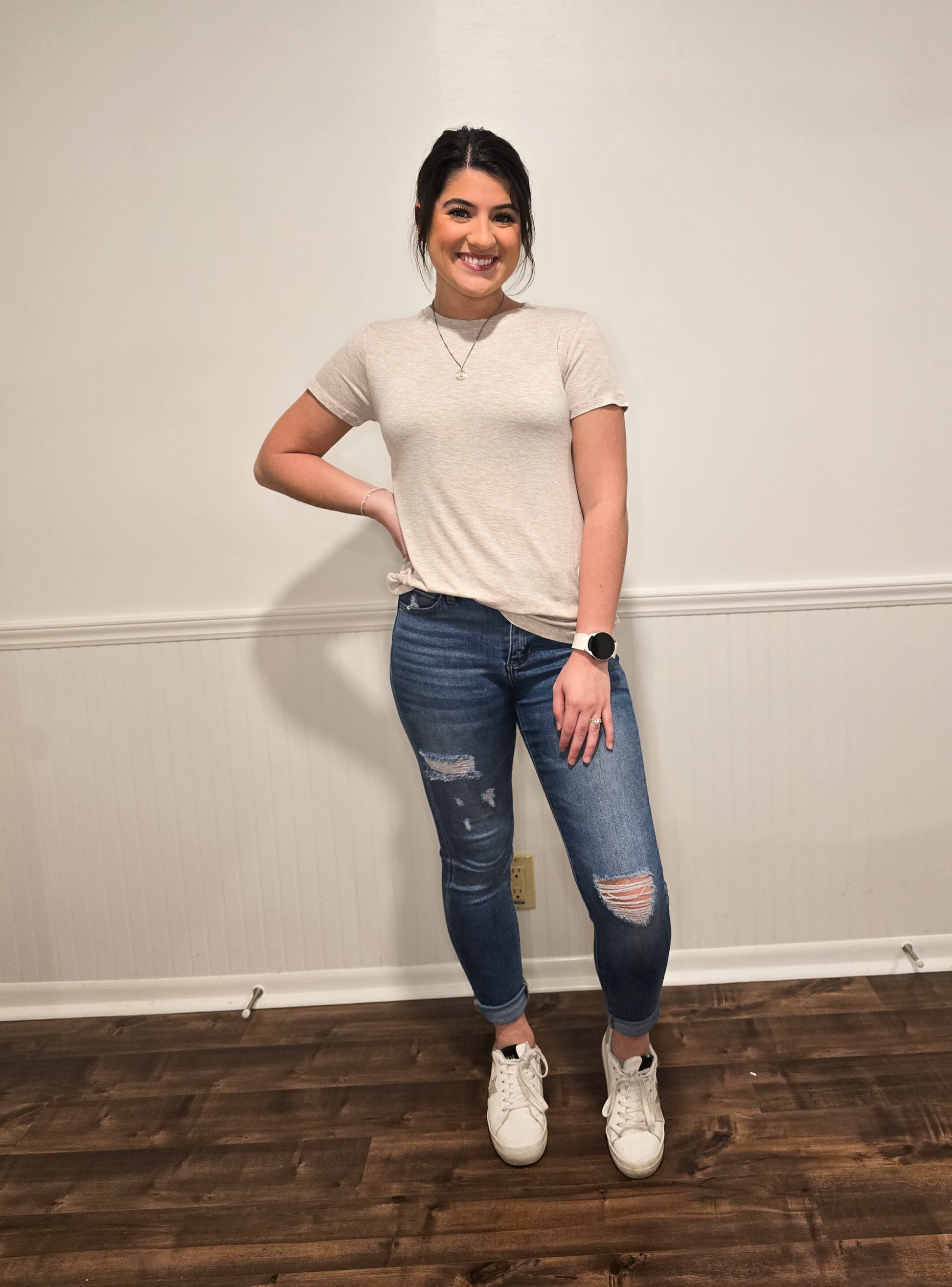 This basic tee is so soft and comfy!! It pairs great with whatever bottoms your heart desires. Perfect for gameday or everyday wear! It is also the perfect tee for layering.