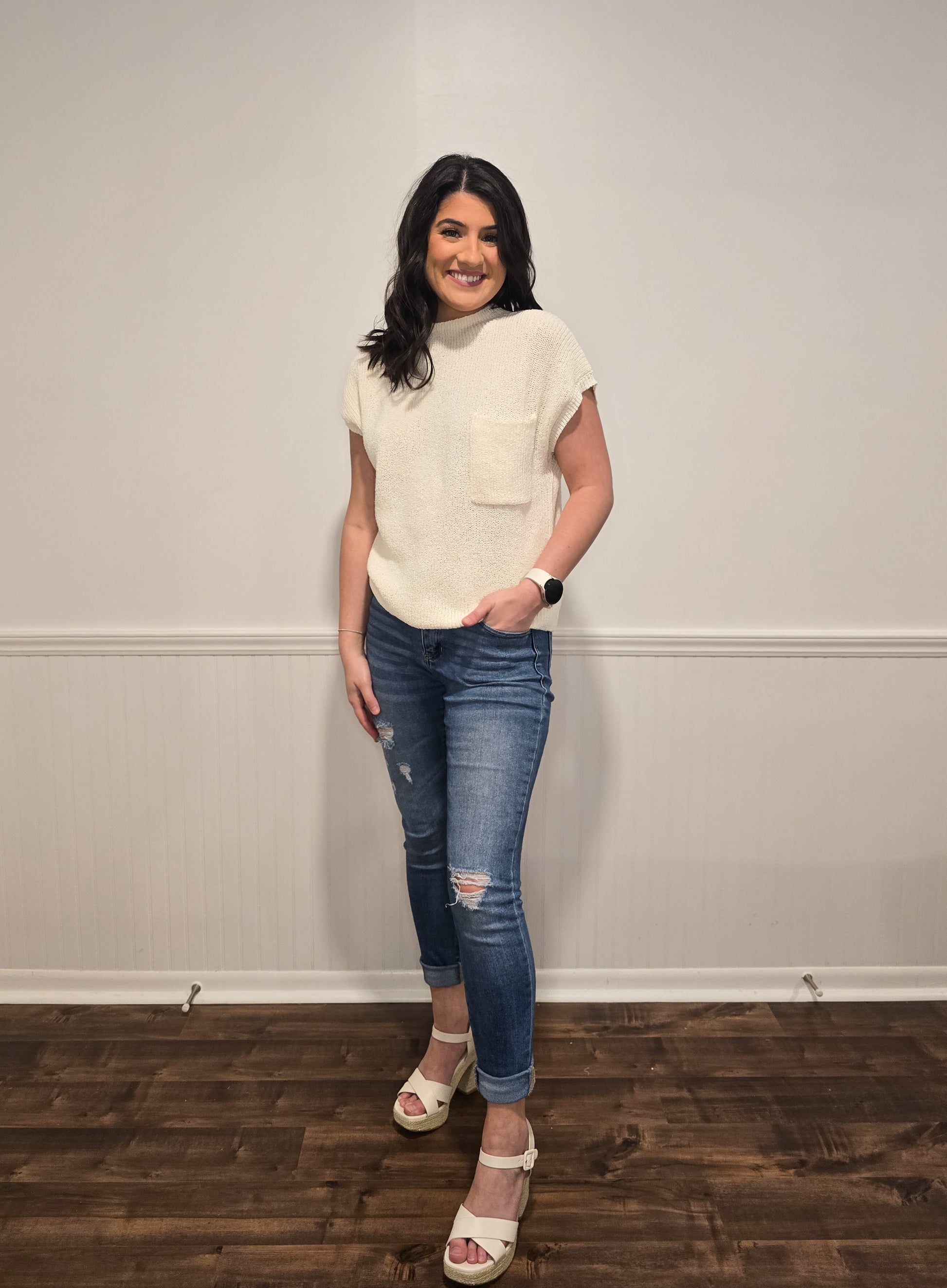 This mock neck short-sleeve sweater top is so precious!!! You don't want to miss out on this one! Perfectly paired with your favorite denim, this top is a must have in your closet!