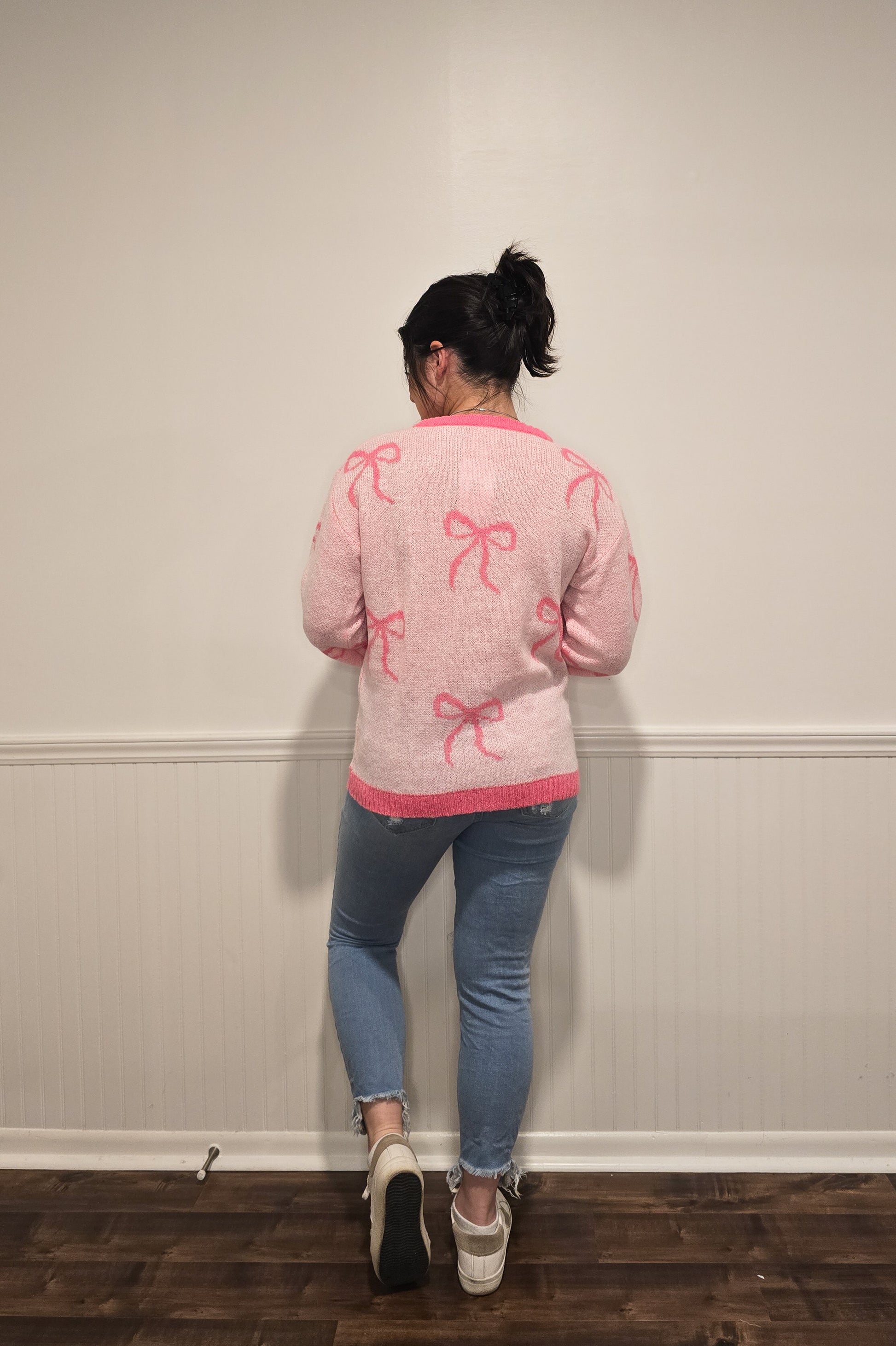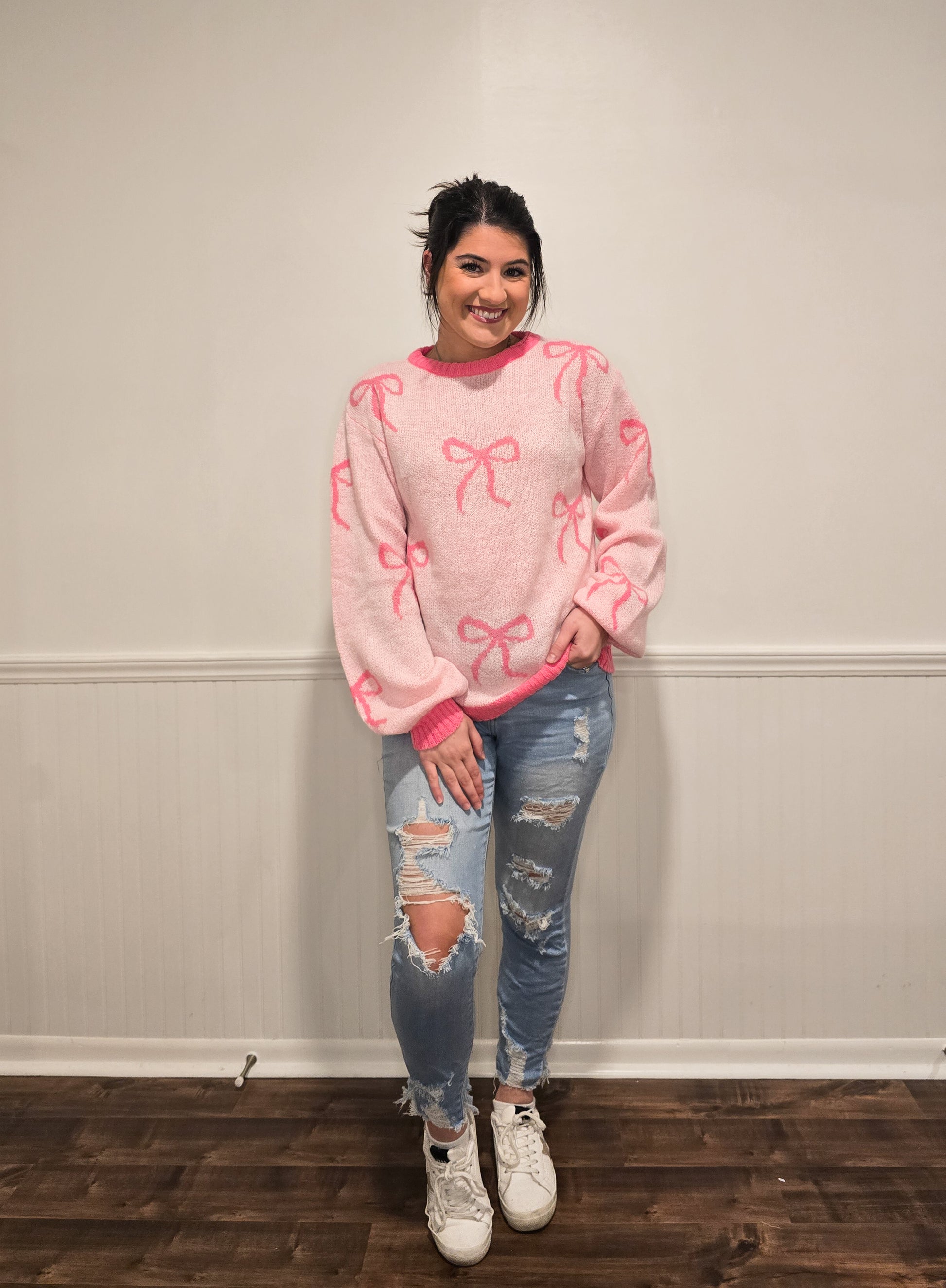 This precious pink ribbon sweater is a MUST for all my girlies! It has long balloon sleeves and a relaxed fit. It is a lightweight sweater that is perfect for those breezy nights!